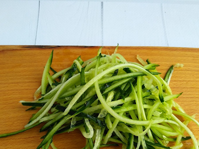 Gurķu karbonāde ar rīvi korejiešu dārzeņiem.