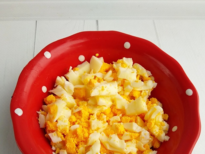 Olu uzvāra un sagriež kubiņos.